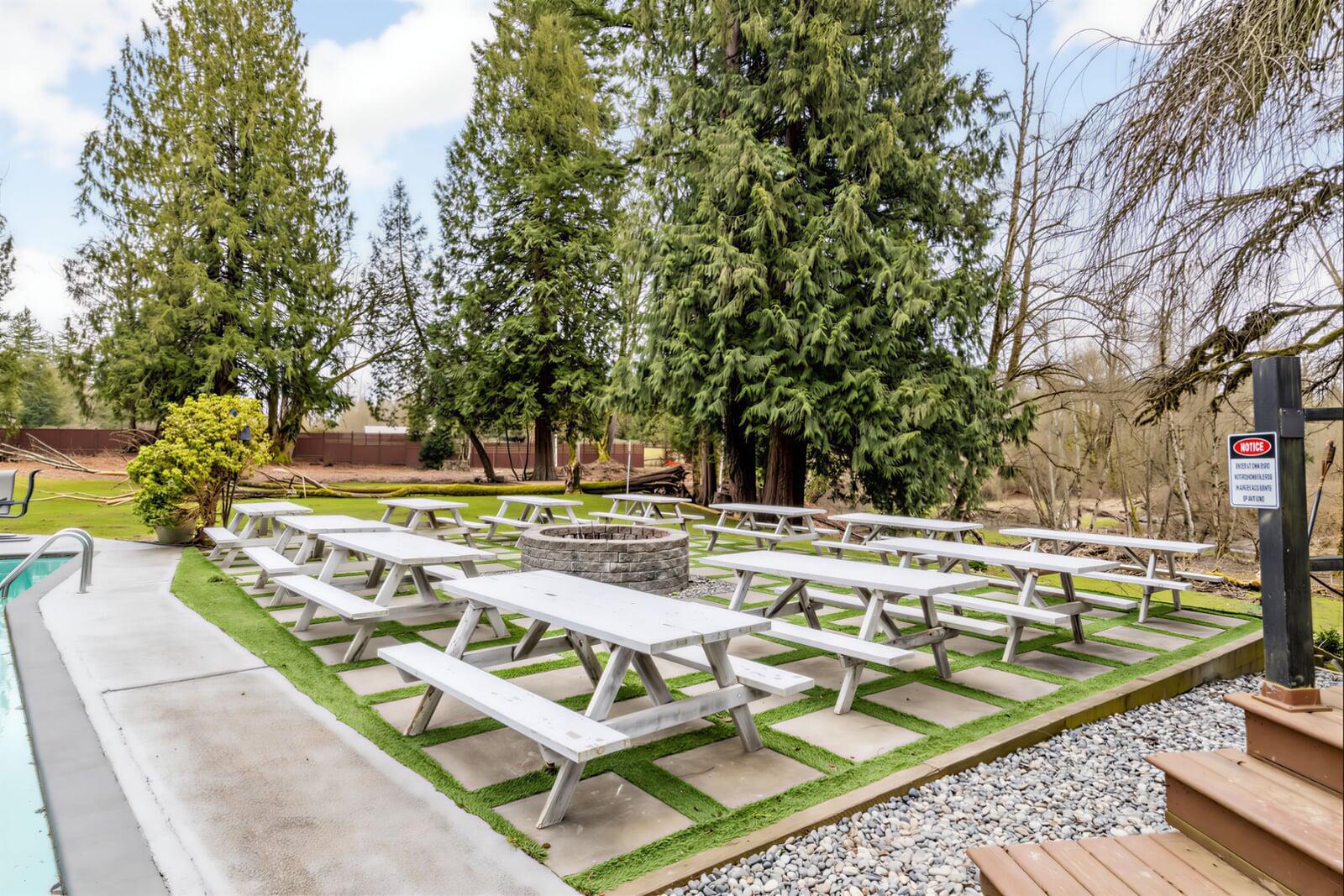 - Pool, hot tub, fire pit, and lawns for photos and gathering